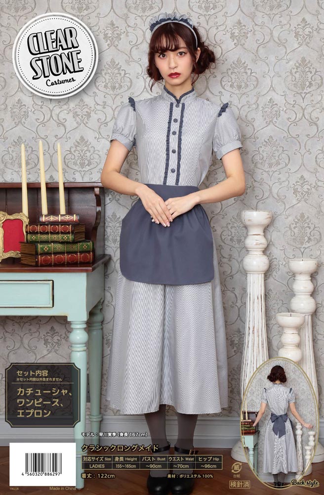 ■セット内容:カチューシャ、ワンピース、エプロン ■素材:ポリエステル100% ■洗濯表示:ワンピース/洗濯不可、塩素系漂白剤による漂白不可、アイロンは中温で当て布使用、ドライクリーニング不可 エプロン/洗濯機不可、弱い手洗い可、塩素系漂白剤による漂白不可、アイロンは中温で当て布使用、ドライクリーニング不可 ■商品サイズ:袋入りパッケージ有(約W260×H390×D50mm) ■総重量:315g ■対応サイズ:Ladies/身長 155〜165cm、B 〜90cm、W 〜70cm、H 〜96cm ■メイン部分の長さ(着丈等):122cm ■開き:背中心ファスナー ■モデル身長:早川実季167cm ■モデル着用サイズ:- ■B(実寸):92cm ■W(実寸):72cm ■H(実寸):- ■肩幅(実寸):36cm ■袖丈(実寸):20cm ■股下(実寸):- ■モデル名:早川実季 ■原産国:中国 ■その他パーツ情報:- ■裏地の有無:無し ■商品について注意事項: ※生産時期やロット、デザインによって、多少サイズ・色・柄が異なる場合があります。
