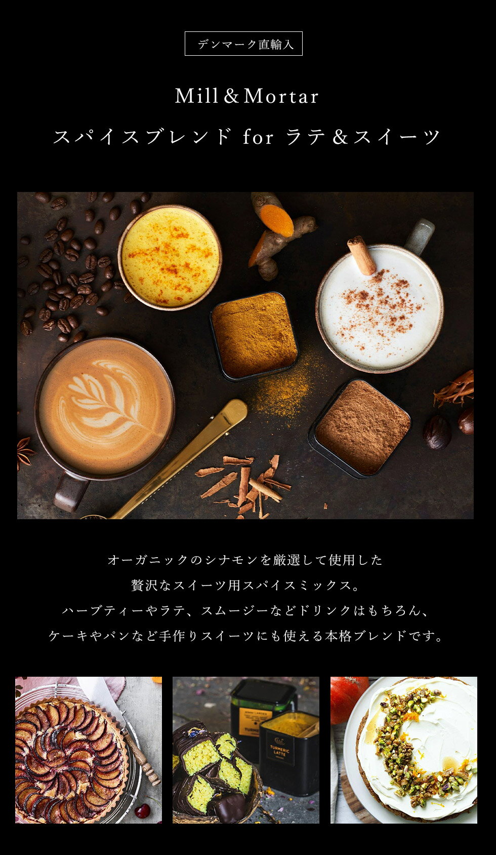 Mill&Mortarのシナモンブレンドはスリランカの厳選シナモンに、カルダモンの甘いミントのようなさわやかさと、ショウガの刺激を加えた女性向けのブレンドになっています。