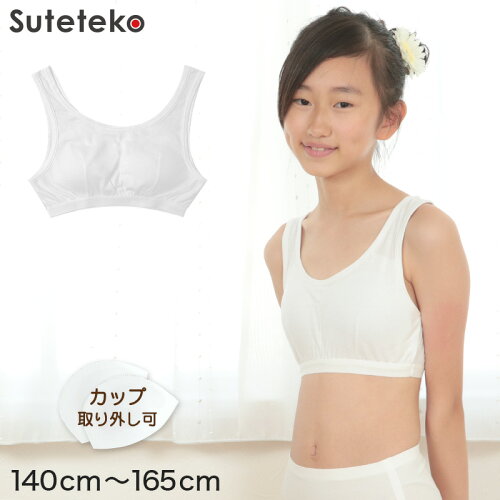 ブラジャー 中学生 ブラ キッズ ジュニア インナー 140cm〜165cm (アンダー ゴム なし 小学生 女の子 胸 二重 インナー キッズ 女児 ソフトカップ 綿100% シャツ カップ付きインナー 白 ブラトップ 肌着 140 150 160 165)