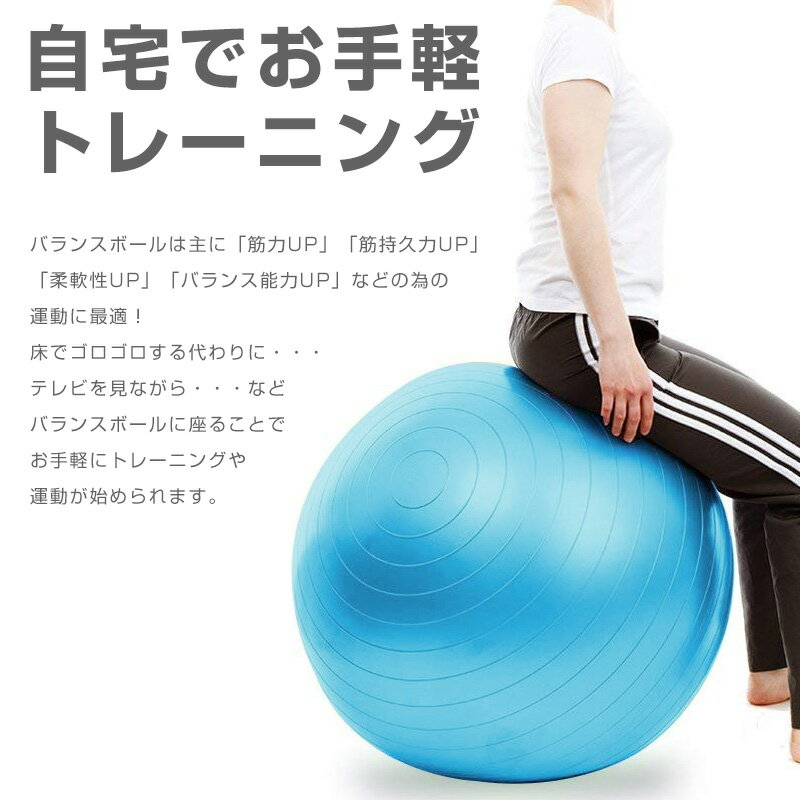 【検索ワード】 バランスボール エクササイズボール ヨガボール フィットネスボール ダイエット 体幹トレーニング インナーマッスル 姿勢矯正 トレーニングバルーン 体操ボール 椅子 バランス運動 スイスボール 65cm アンチバースト 空気入れ フットポンプ商品説明 体幹トレーニングやダイエットに!65cmタイプのバランスボールです。